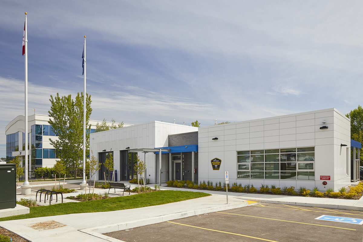 This project involved the construction of a new 5,000 square foot, single-storey slab-on-grade EMS reporting station, featuring a 4-bay garage to accommodate emergency response vehicles. Designed as an active response facility, the building supports both operational efficiency and staff well-being through a thoughtfully planned program of spaces.